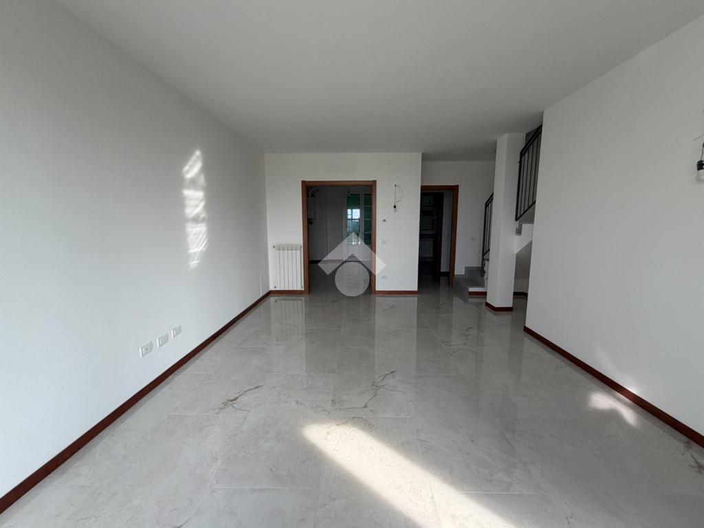 In posizione strategica vicino ai principali servizi offerti dalla cittadina, in una palazzina interamente costruita nel 2015, con impianti autonomi, proponiamo appartamento al primo piano su due livelli abitativi così composto: al primo piano ampio soggiorno luminoso con balconcino, cucina abitabile anch’essa con balconcino, antibagno e bagno finestrato; al piano secondo due camere da letto entrambe con cabina armadio e due bagni finestrati. Possibilità di ricavare anche una terza camera da letto al secondo piano.